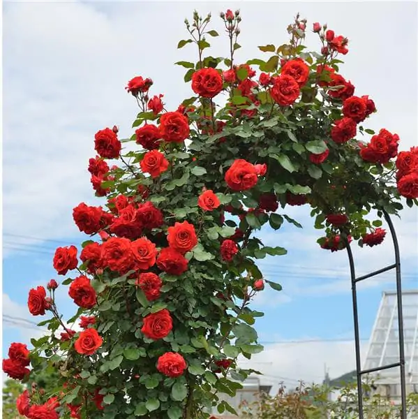 Ці плетисті троянди мають міцні, в’юнкі стебла, які природно обвивають конструкції, створюючи приголомшливий вертикальний вигляд з пишного зеленого листя та яскравих квітів.