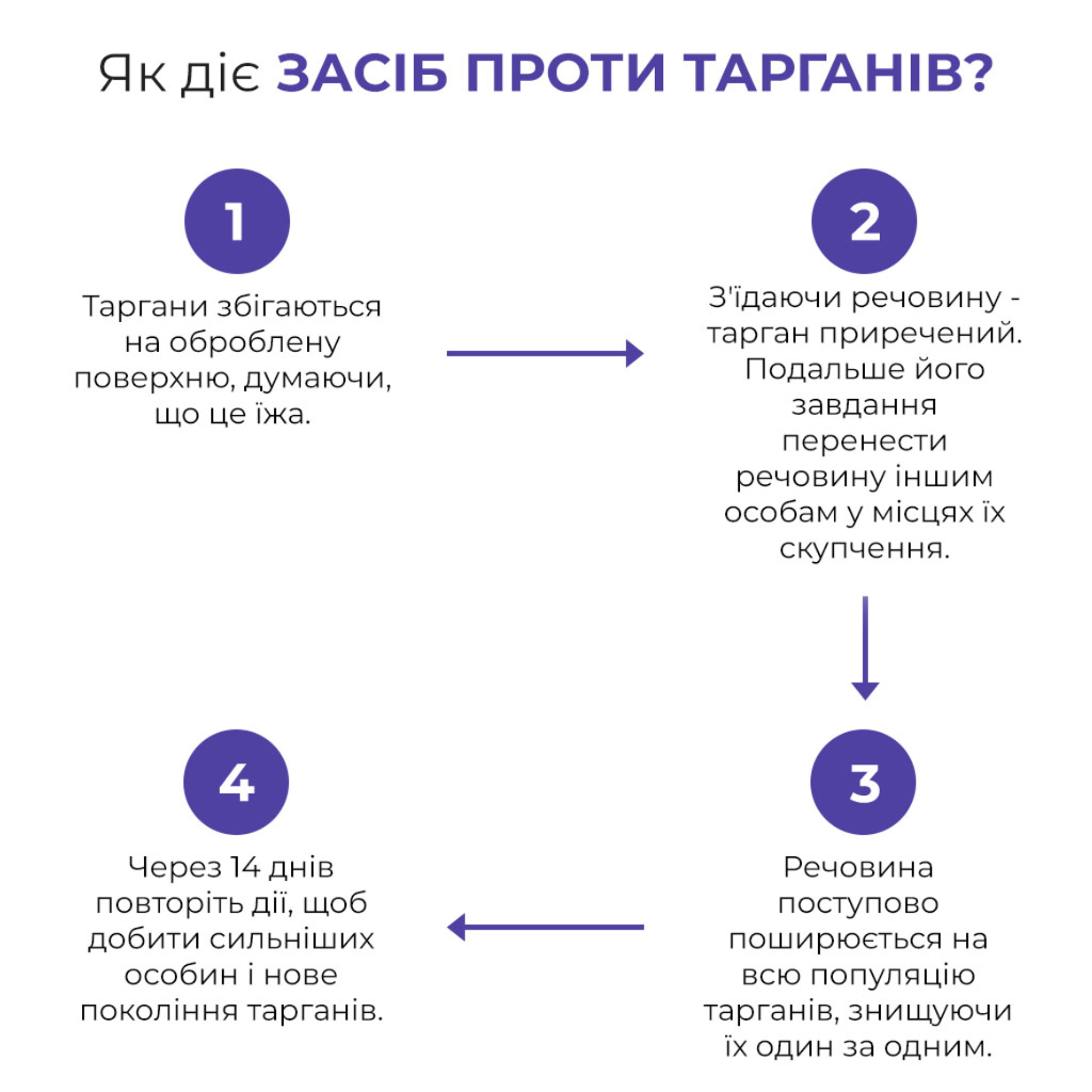 Спосіб використання - Розпорошити у місцях скупчення тарганів, місцях проникнення та темних місцях та на самих особин